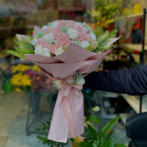 Pembe Rüya Gül Buketi, gül ve tamamlayıcı yeşilliklerle hazırlanan zarif bir tasarımdır.